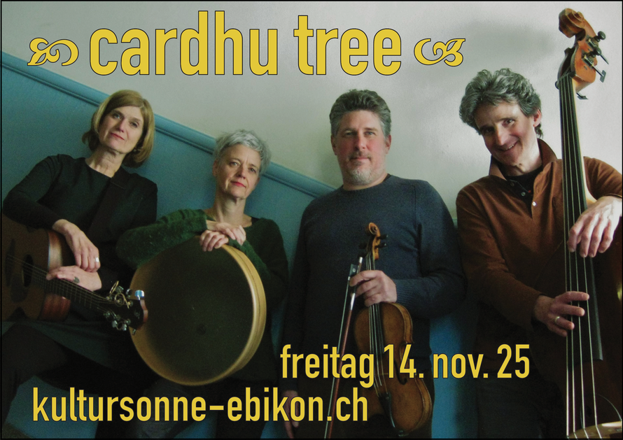 FR 14.11.25 | Cardhu Tree – Venture into the Unknown Cardhu Tree steht für «Indie Folk Tales». Ihre Songs erzählen von Verwurzelung und Entwurzelung, von Verästelungen und Entgleisungen des Lebens. Die Band mischt Eigenkompositionen gekonnt mit frisch arrangiertem Celtic Folk, bluesigen Elementen und einer Prise Schweizer Volksmusik. Singer-Songwriterin Kathrin Künzi singt auf dieser Bühne vom fremden Reisenden, der seinen Vater und seine Mutter sucht, von der grossen Flut, die Häuser und Menschen mit sich reisst, von armen Leuten, die sich ohne Wohnung wie Treibholz durchs Leben schlagen müssen. Künzis Stimme ist klar wie das Quellwasser der Engstlige, Vincent Millioud zaubert auf der Violine, und am Bass sorgt Emanuel Schnyder für Tempo. Kathrin Künzi (Vocal, Guitar, Banjitar Compositions) Vincent Millioud (Violin) Emanuel Schnyder (Double Bass) Karin Schulthess (Perkussion) Konzertbeginn 20.15 Uhr Web | Tickets